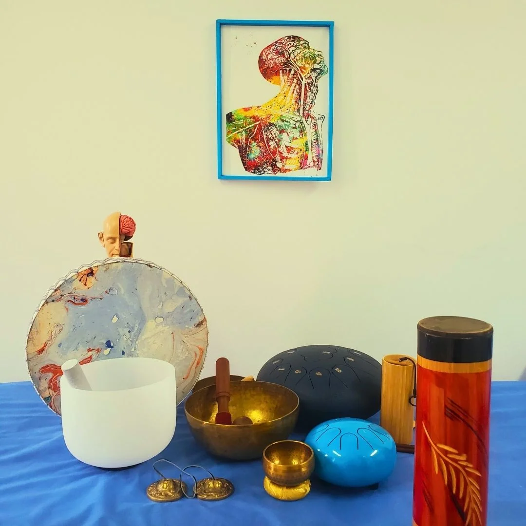 Terapia de sonido en Bogotá con cuencos tibetanos y handpan. Una experiencia vibracional que relaja el sistema nervioso, libera tensiones y equilibra cuerpo y mente con frecuencias sonoras únicas.